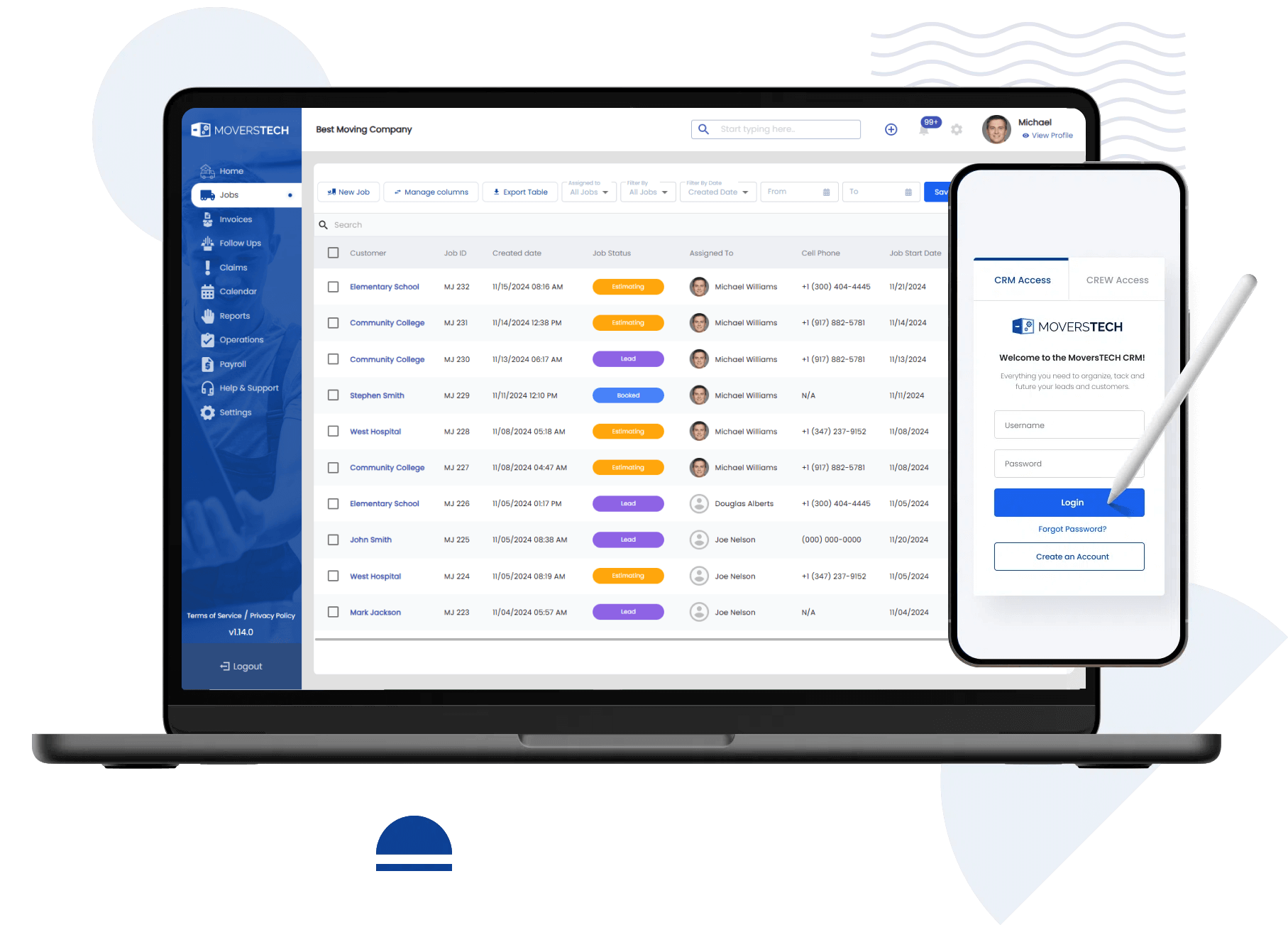 MoversTech is a cloud-based moving company CRM software that can be used on any computer or mobile device that has access to the Internet.